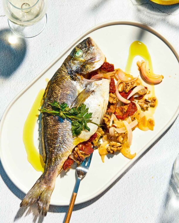 - Ψήνουμε για περίπου 25 λεπτά, μέχρι να ροδίσουν απαλά τα ψάρια, αλλά η σάρκα τους να μη στεγνώσει.