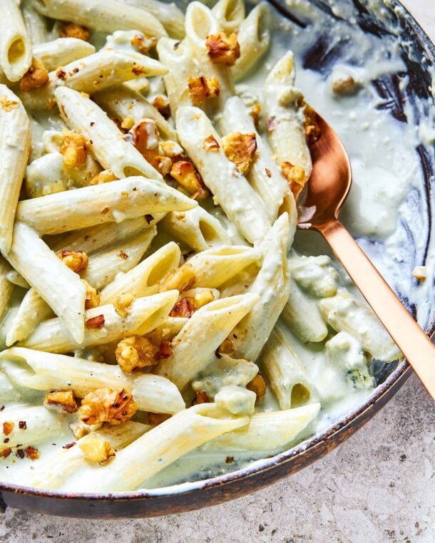 Πένες με γκοργκοντζόλα, καρύδια και Mοscato d’Asti
